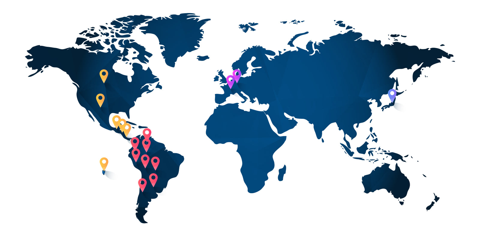 - Chile, Argentina, Ecuador, Perú, Bolivia, Colombia, Paraguay, Venezuela