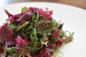 La ensalada instantánea de algas chilenas son algas finamente seleccionadas de acuerdo a su estado de madurez y procesadas al estricto estilo japonés. Chondracanthus chamissoi (Chicorea de mar), Callophyllis variegata (Carola) y Macrocystis pyrifera (Huiro flotador).
